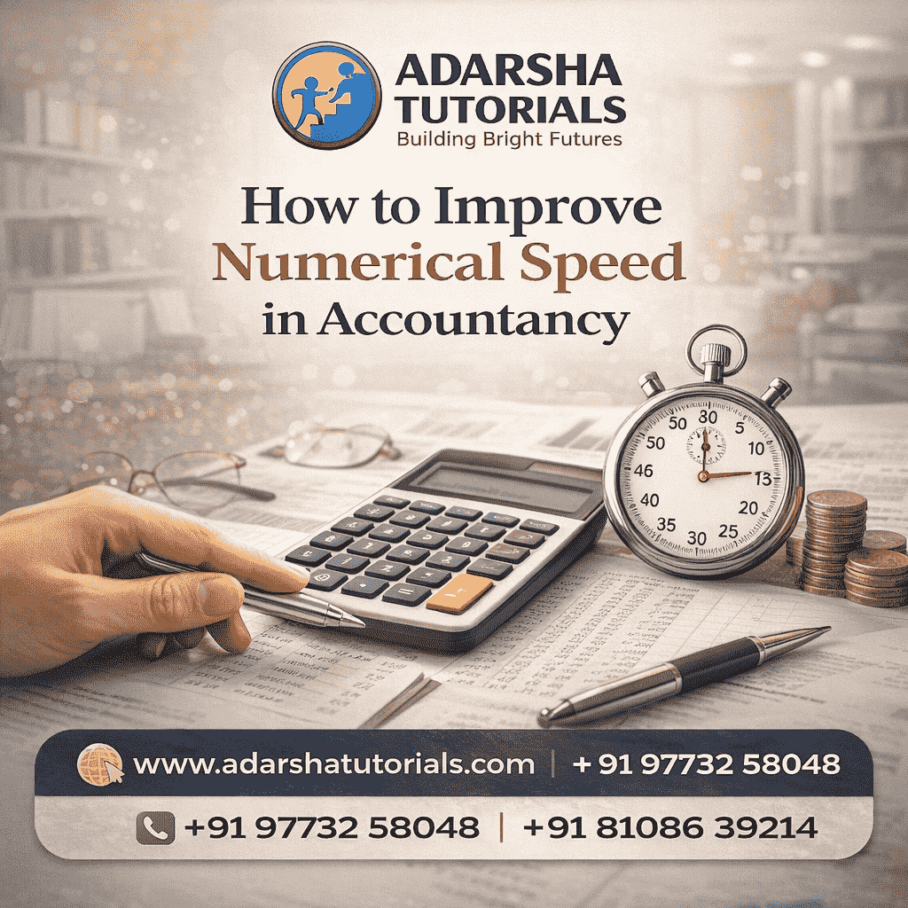 Learn how to improve numerical speed in Accountancy with expert tips from Adarsha Tutorials. Discover smart calculation techniques, time management strategies, and exam-focused practice methods to score higher in board and competitive exams.