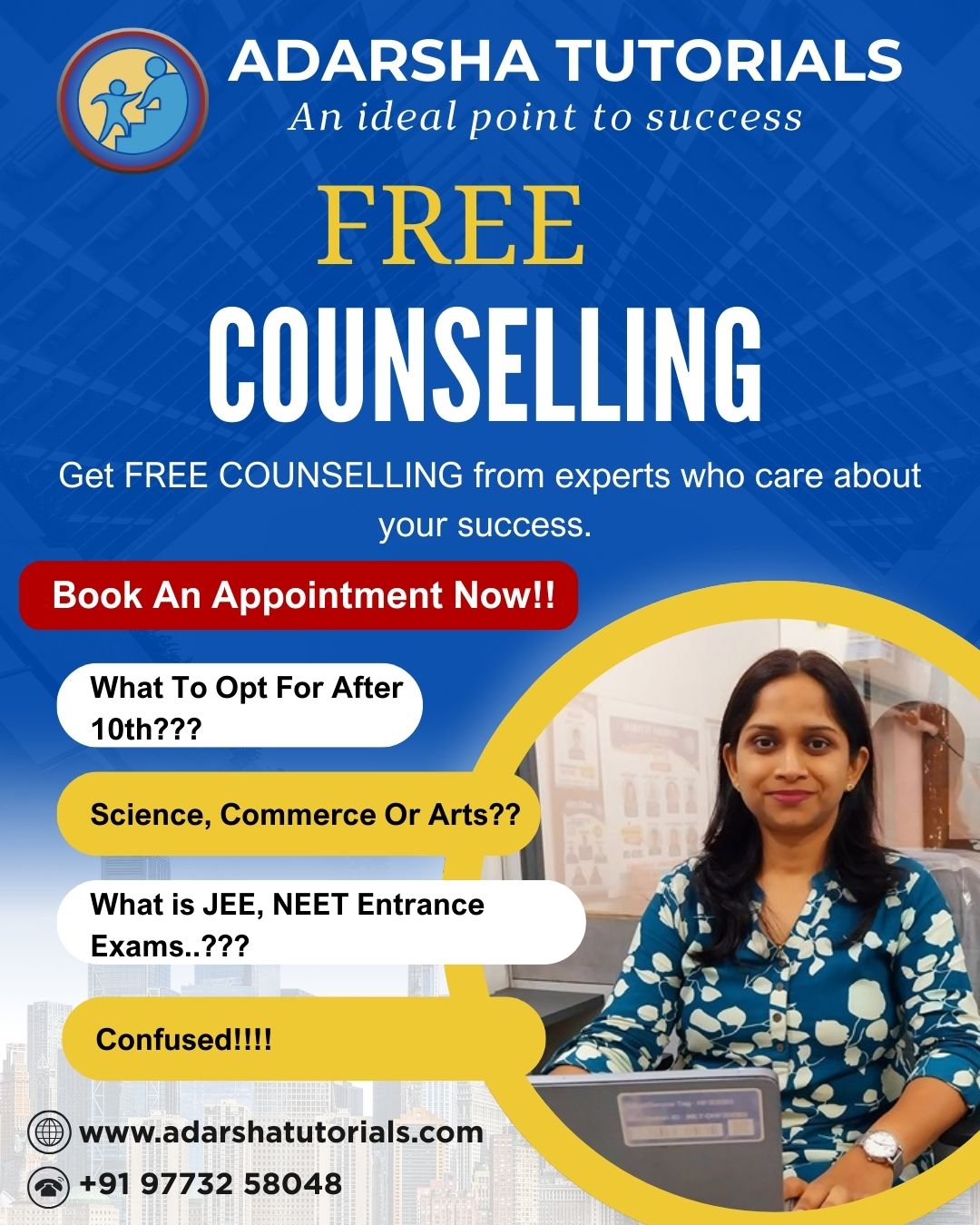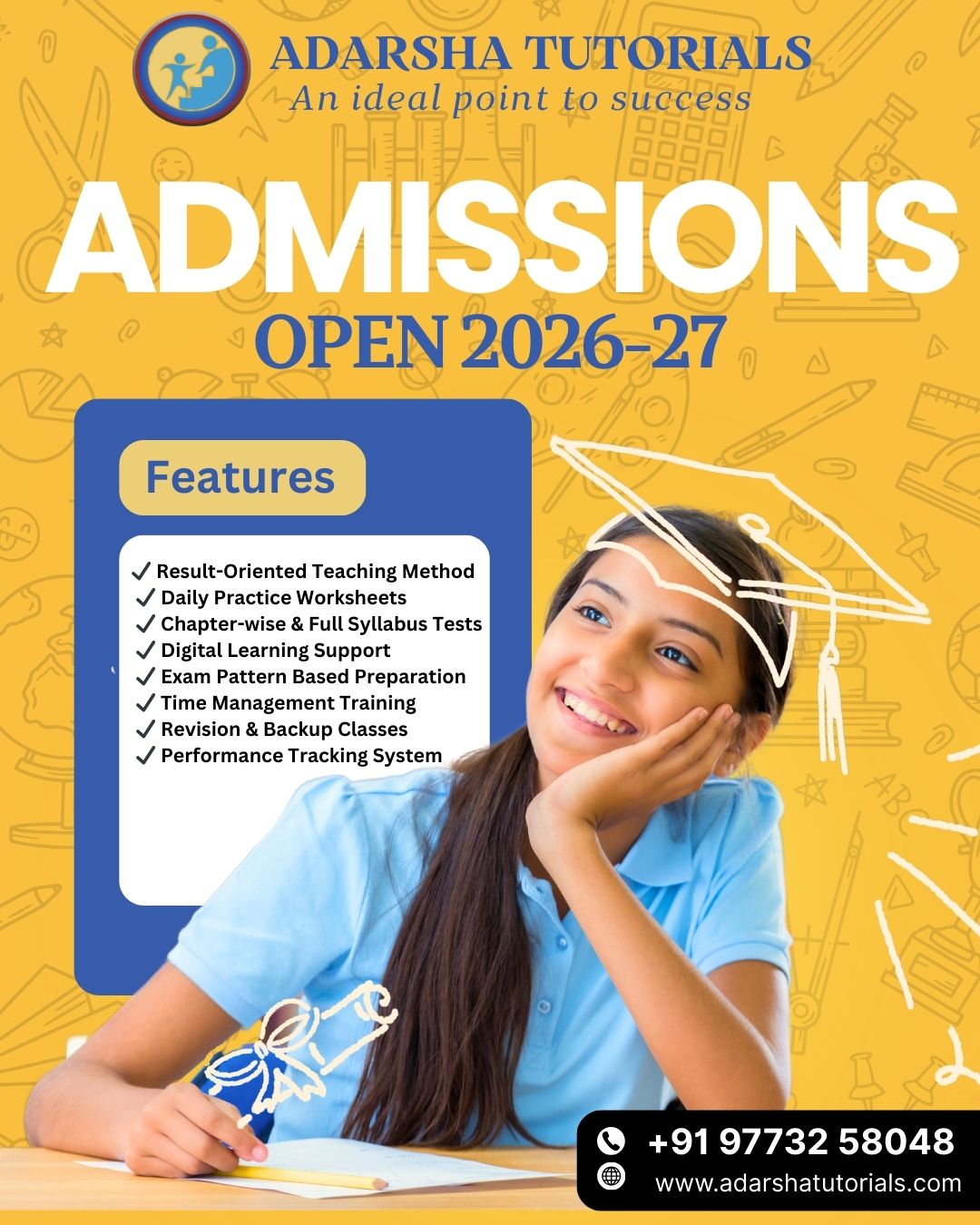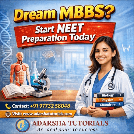 Thursday, February 12, 2026 At Adarsha Tutorials, success is not accidental—it’s guided. View More Monday, February 9, 2026 Confused after 10th? 🤔 View More Wednesday, February 4, 2026 Dreaming of becoming a doctor? 🩺 View More Tuesday, February 3, 2026 Admissions are now open for the academic year 2026–27 at Adarsha Tutorials. View More Wednesday, January 28, 2026 Skills build futures. Marks don’t limit dreams. View More Monday, September 22, 2025 Happy Navratri from Adarsha Tutorials! View More Friday, September 19, 2025 3 Keys to Education Success View More Wednesday, September 17, 2025 Success is the result of effort, dreams, and luck. View More Monday, September 15, 2025 *Motivation is the fuel to success!* View More Saturday, September 13, 2025 हिंदी दिवस की हार्दिक शुभकामनाएँ | Happy Hindi Diwas! View More Friday, September 12, 2025 Adarsha Tutorials – An Ideal Point to Success! View More Monday, September 8, 2025 At Adarsha Tutorials, we believe every student has the power to turn their DREAMS into reality. View More